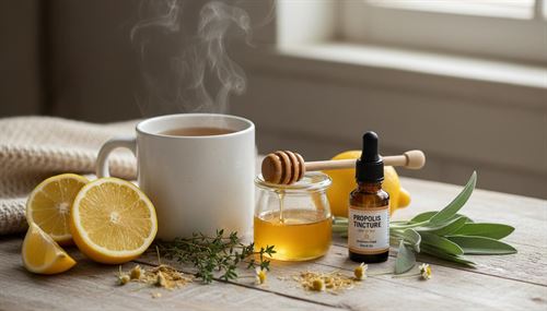 פרופוליס הוא שרף טבעי המיוצר על ידי דבורים וניחן בתכונות אנטי-ויראליות, אנטי-בקטריאליות ואנטי-דלקתיות. השימוש בו בטיפות או בספריי מאפשר לחטא את הגרון, להפחית את עוצמת הכאב ולסייע בקיצור משך המחלה.